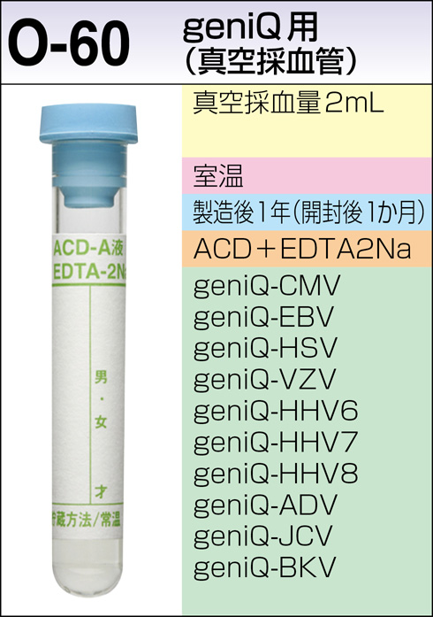 | 解説 | 感染症関連遺伝子(核酸)をリアルタイムPCR法によって測定する検査で、LQは液体成分を検査材料として設定した項目であることを示す。 本検査はアデノウイルス(adeno virus;AdV)について液体成分中のDNAを定量するものである。アデノウイルスは既往感染や不顕性感染により潜伏感染していることが多く、臓器移植時などの免疫能低下時には再活性化して急速に悪化する例があることが知られている。その際に多量に増幅産生されたウイルスDNAが液体成分中に放出されることが想定されている。本検査は臓器移植時のAdV感染・再活性化のモニタリングなどに有用と考えられる。 |