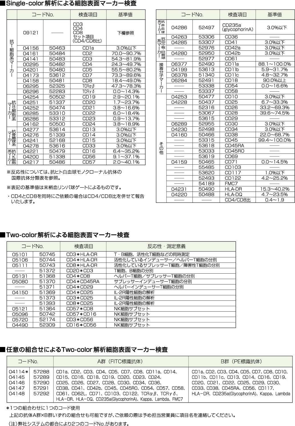| 検査項目名称 | Single-color解析による 細胞表面マーカー検査 |