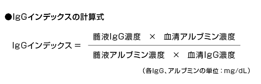 | 採取条件・提出条件 / 備考 | 血清と髄液はペアでご提出ください。 血清、髄液を同時に採取できない場合は、24時間以内に採取して両材料を併せてご提出ください。 IgGインデックス、血清アルブミン、髄液アルブミン、血清IgG、髄液IgGをご報告いたします。 ●補足情報参照 |