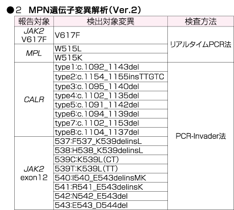 | 検査項目名称 | MPN遺伝子変異解析(Ver.2) | |||