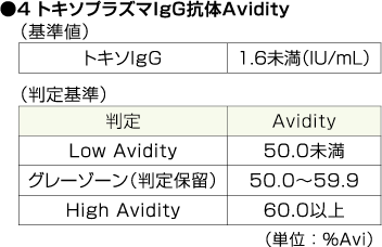 | 検査項目名称 | トキソプラズマIgG抗体Avidity | |||