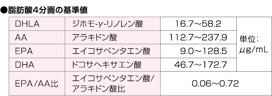 | 検査項目名称 | 脂肪酸4分画 | ||||