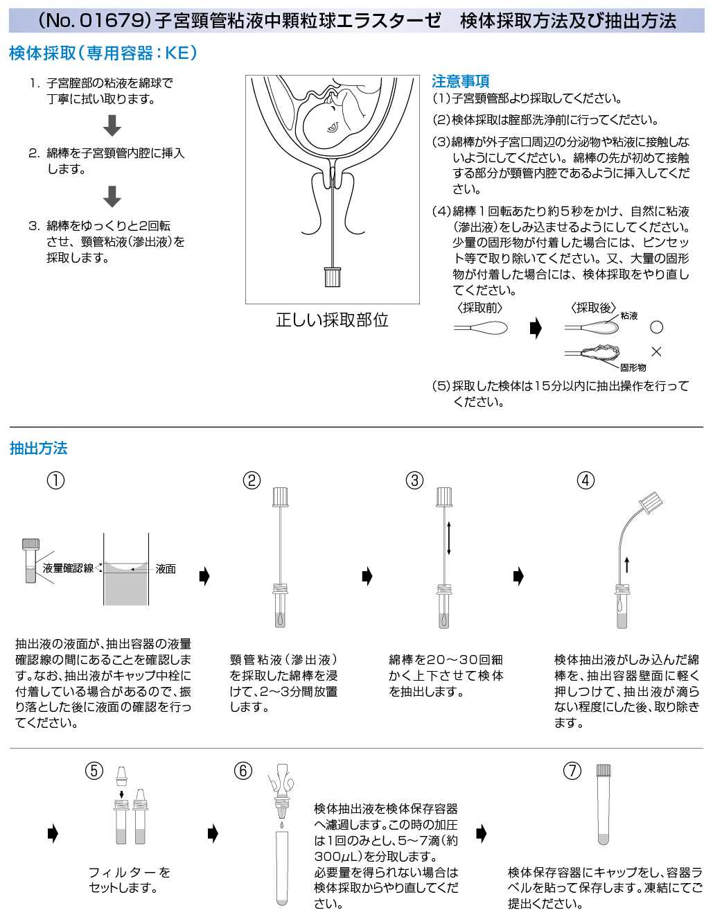| 採取条件・提出条件 / 備考 | 腟部洗浄前に検体採取 採取法補足情報参照 |