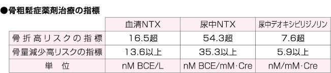 | 解説 | デオキシピリジノリン(DPD)は骨基質の有機成分の約90%を占めるⅠ型コラーゲンの分子間において架橋を形成し、コラーゲン線維の安定性に寄与している架橋物質である。臨床的意義として骨粗鬆症診療においては①薬物治療を行うか否か②骨吸収抑制薬の選択③薬物治療における効果判定④骨折リスクの評価にとって有用である。但し、骨粗鬆症の診断には利用できない。また、NTxと同様に原発性副甲状腺機能亢進症の手術適応決定と手術後の効果判定および悪性腫瘍特異物質治療管理料として乳癌、肺癌、前立腺癌の骨転移診断に用いられる。 |