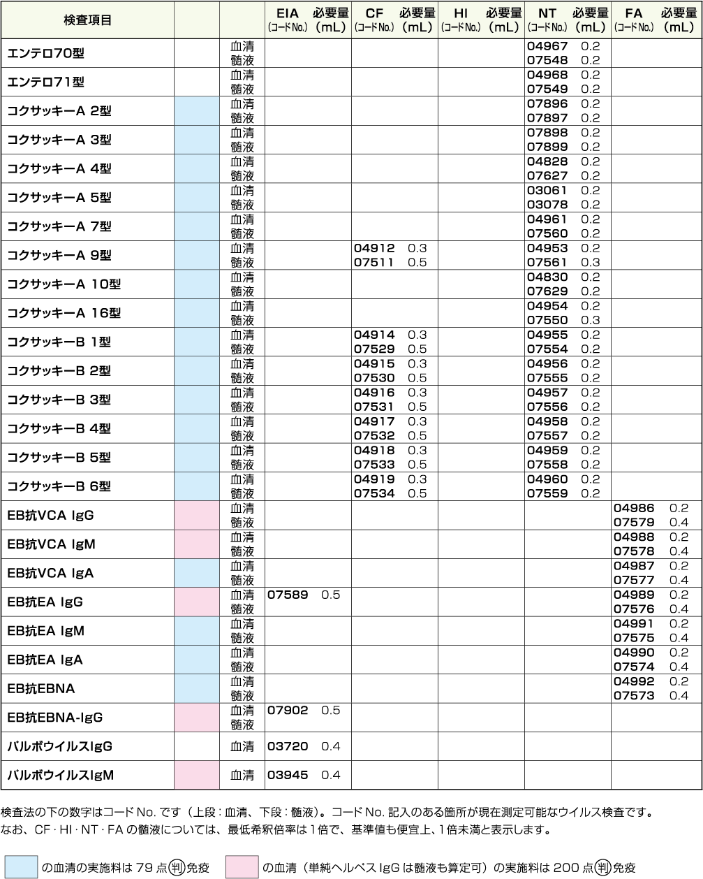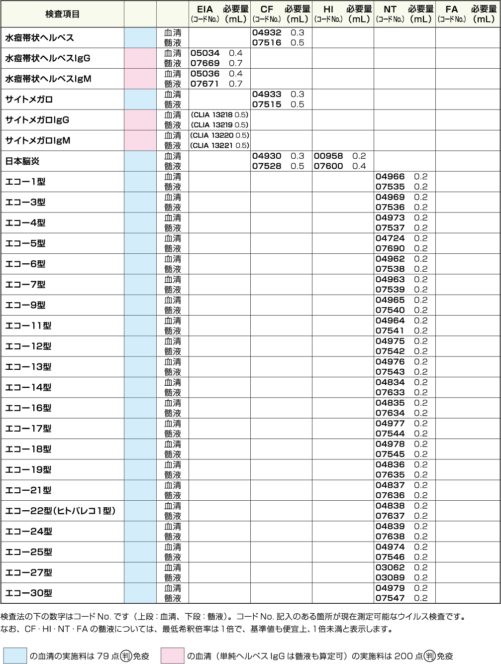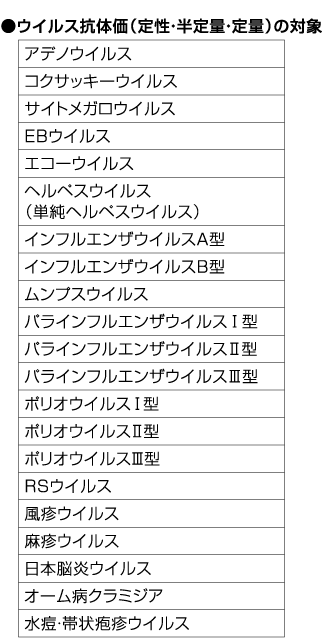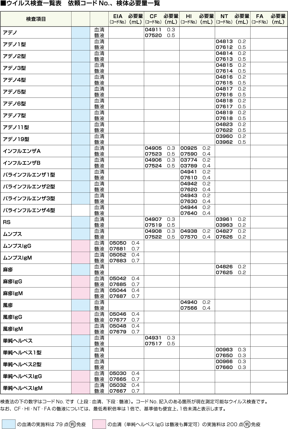 ◇ウイルス検査の依頼コード、検体必要量については補足情報のウイルス検査一覧表をご参照ください。 (髄液でのご依頼も可能です。)