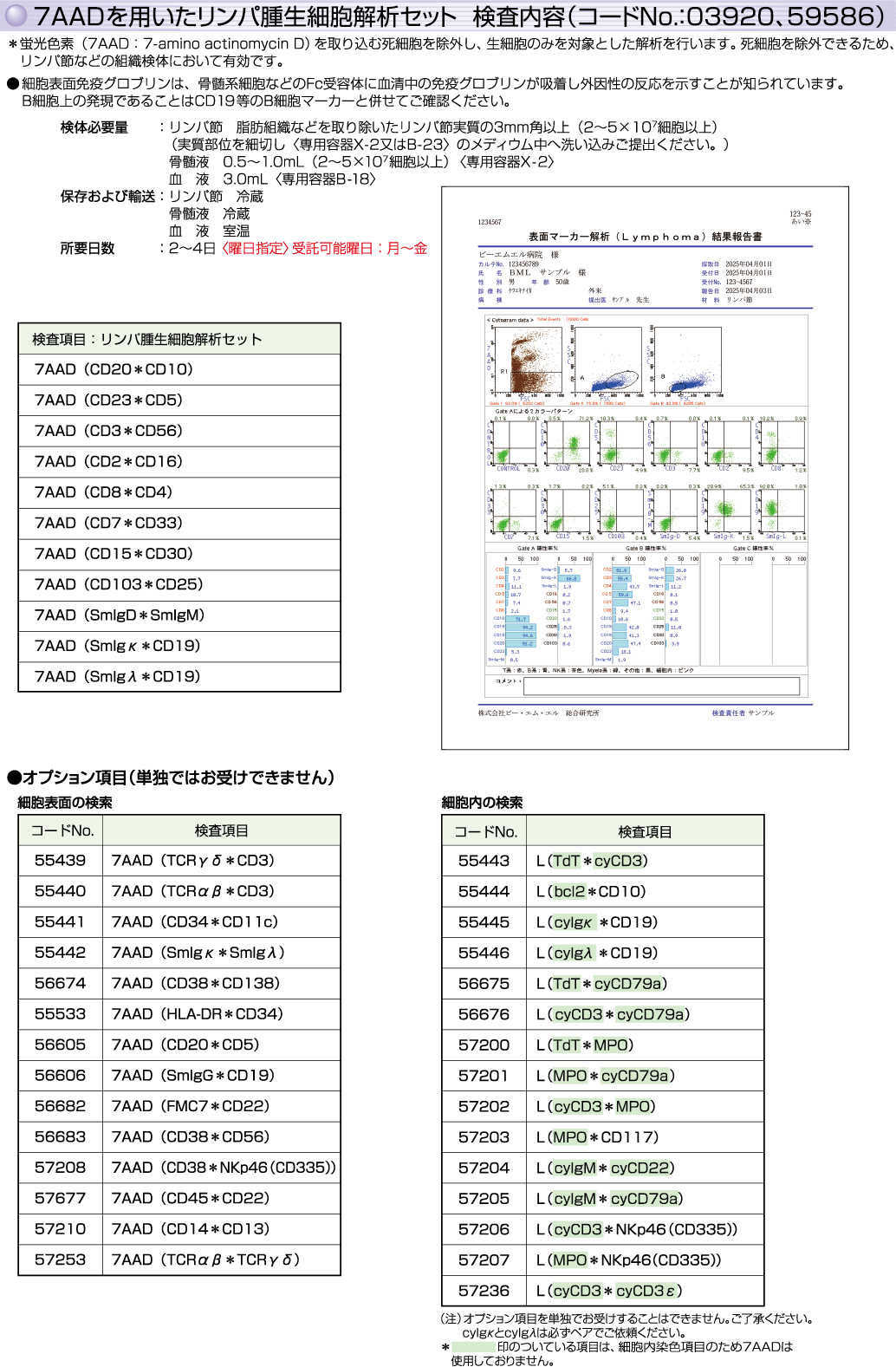 | 検査項目名称 | ![]() 7AADを用いたリンパ腫生細胞解析セット (リンパ腫解析セット) |