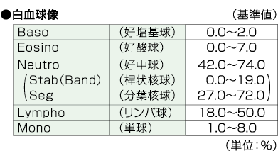 | 検査項目名称 | 血液像 白血球像 |