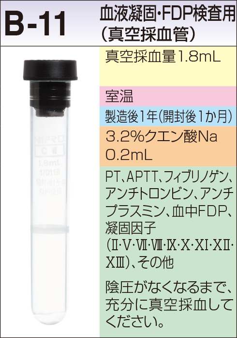 B-11容器使用は、全てクエン酸Na血漿です。