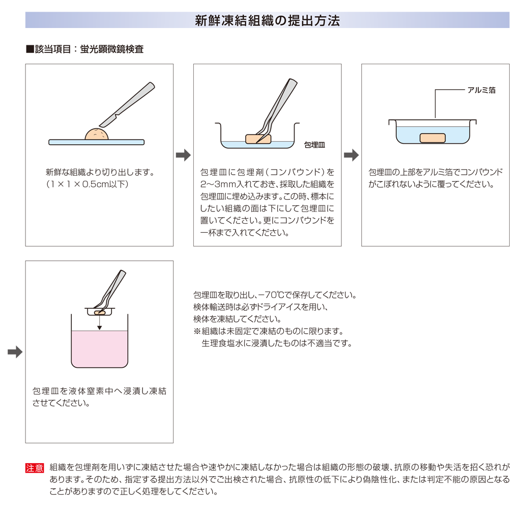 ◇ 新鮮凍結組織の蛍光顕微鏡検査を依頼される場合、06142のセット検査は必須項目となります。