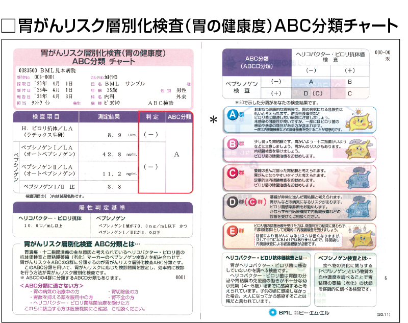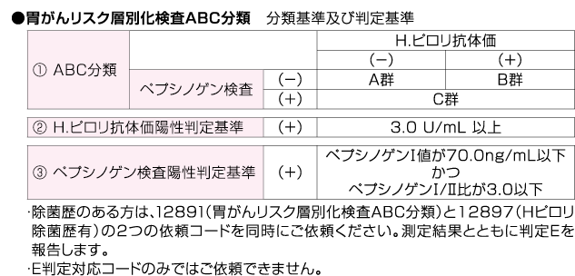| 検査項目名称 | ![]() 胃がんリスク層別化検査ABC分類 |