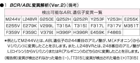 | 検査項目名称 | ![]() BCR::ABL1変異解析(Ver.2) |