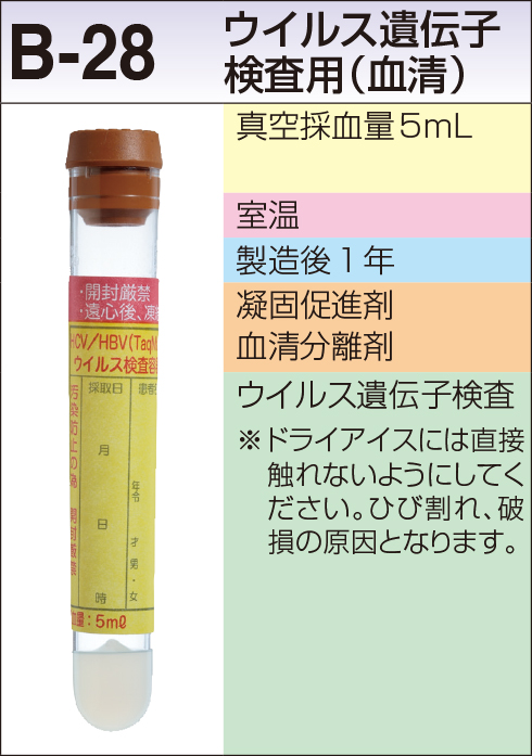| 採取条件・提出条件 / 備考 | ヘルペスウイルス群6項目内で複数項目を同時にご依頼される場合、検体必要量は1項目分で検査可能です。![]() 汚染の影響を受けやすい検査方法のため、他の検査との重複依頼は避けてください。 |