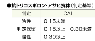 | 基準値 | 判定:陰性 CAI:0.15未満 |