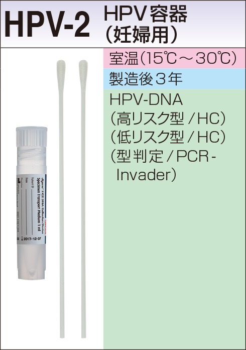 ◆HPV-DNA型判定(PCR-Invader)の容器 HPV-1、HPV-2:HPV-DNA高リスク型/HC(№04288)と共用が可能です。