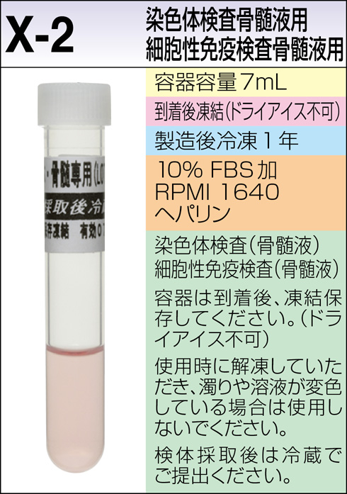 血液はヘパリン入り専用容器に採血、骨髄液は専用容器に0.5mL採取