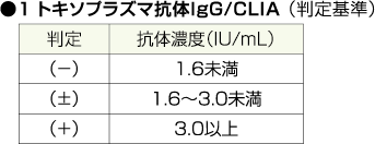 | 検査項目名称 | トキソプラズマ抗体IgG | |||